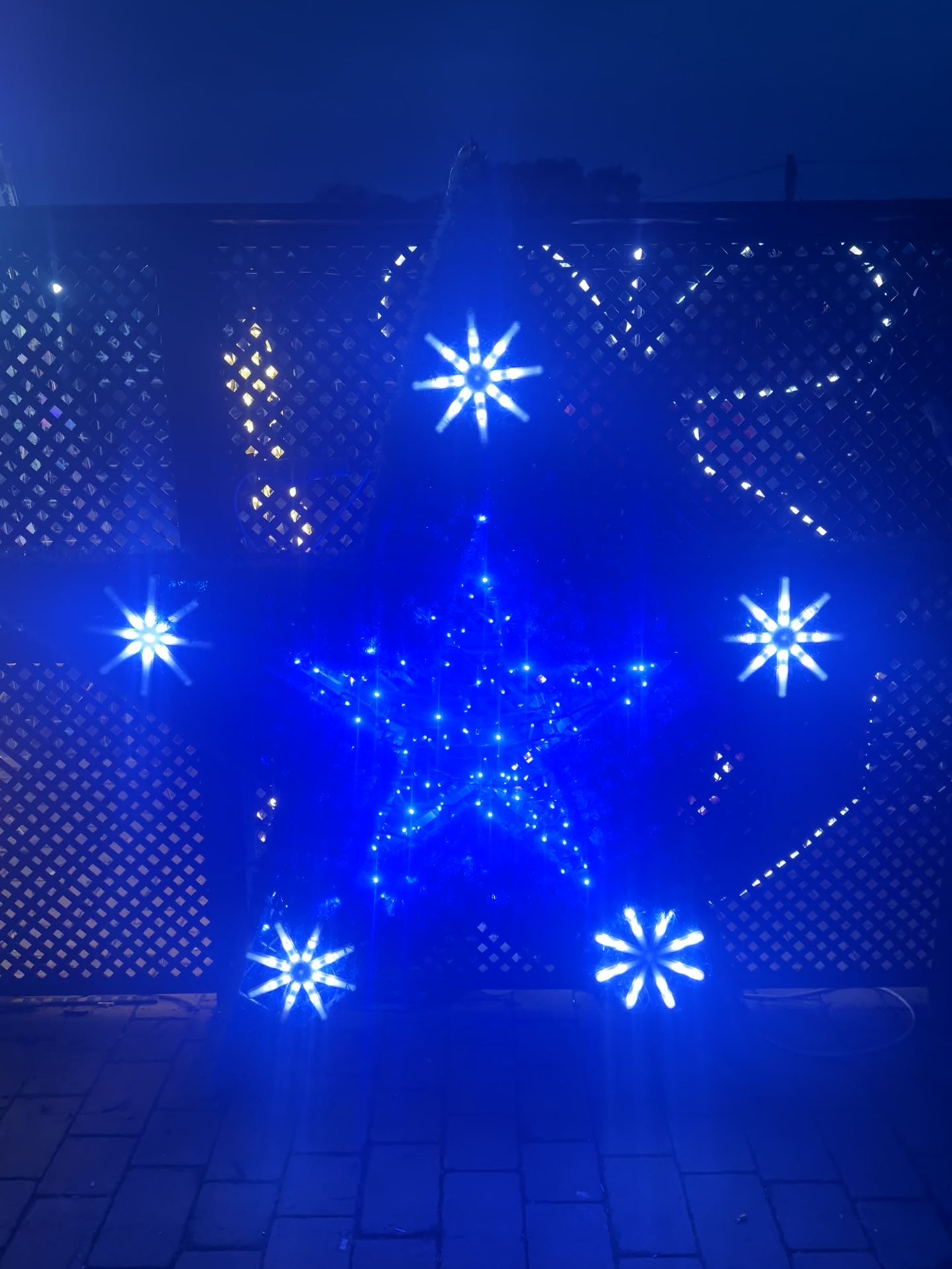 Large Blue Star With Flashing Snowflakes - Outdoor Xmas Lights