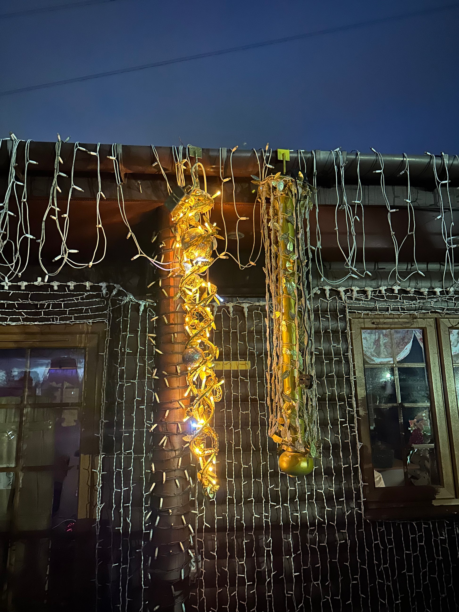Crafted with precision and artistry, this Christmas lighting masterpiece features a delicate golden spiral design that gracefully suspends from your ceiling. The spiral's graceful curves evoke a sense of natural beauty, mirroring the enchanting form of a seashell or the spiraling dance of falling snowflakes.